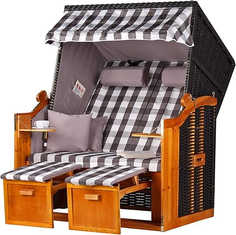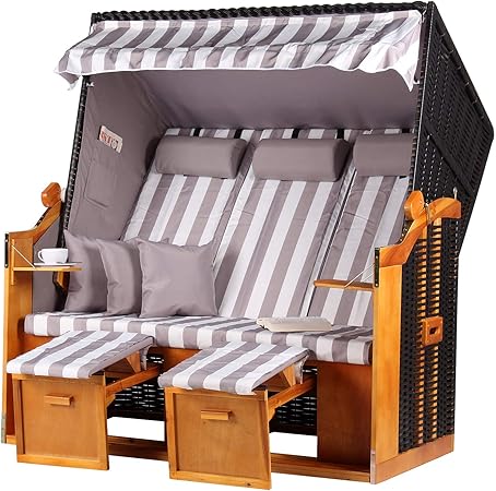 Mit unserem strandkorb ostsee royal xxl anthrazit bieten wir ihnen ein aufregendes möbelstück für ihren garten. Der 2 sitzer strandkorb gewährleistet einen tollen sitzkomfort sowie viele praktische funktionen mit denen sie das wochenende im eigenen garten entspannt genießen können. Webavita strandkorb miami bullauge xl pe grau mahagoniholz stoff. 4 6 von 5 sternen 3.